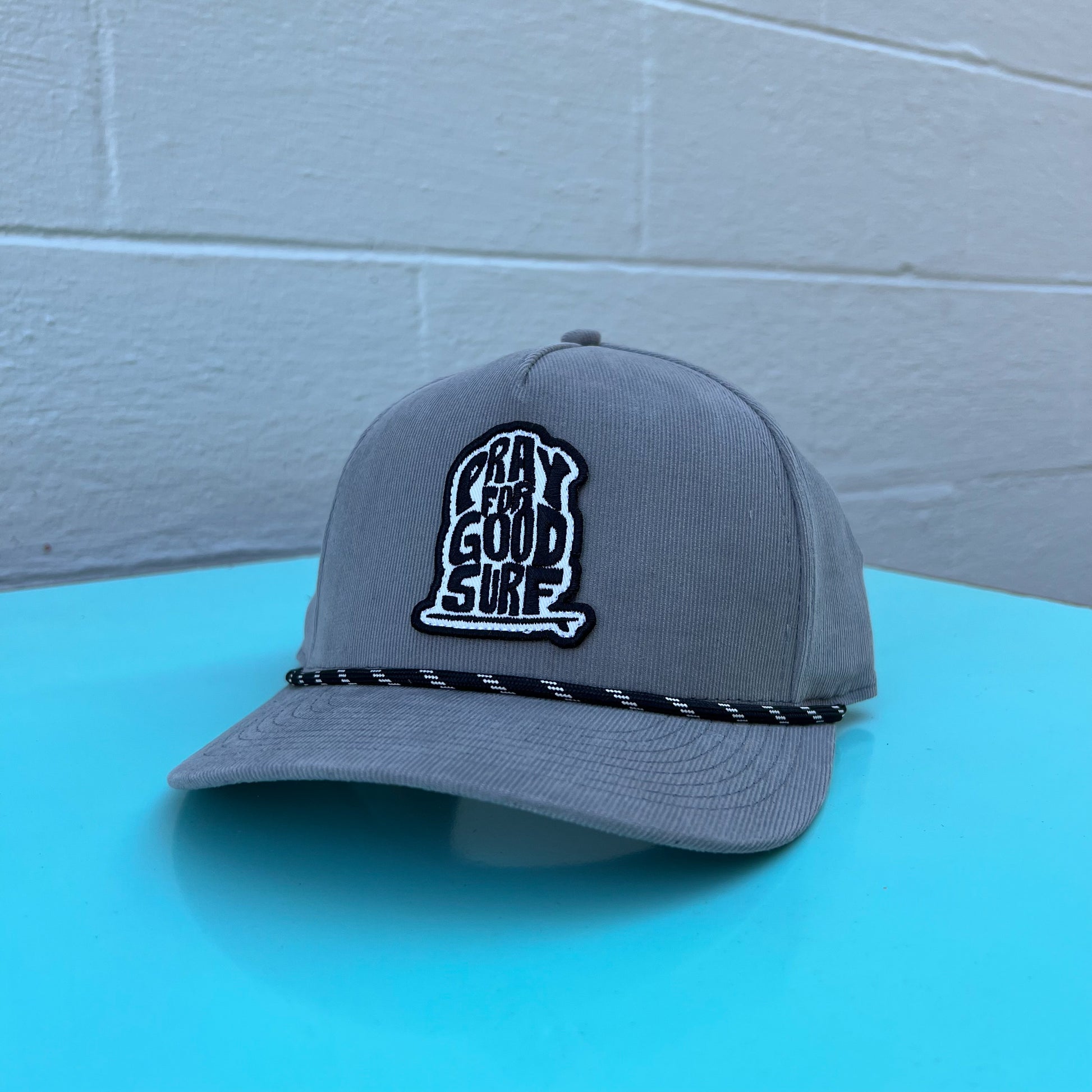 Corded trucker style hat with one of our favorite sayings, "Pray for good surf."